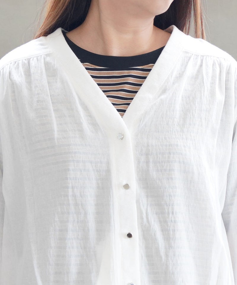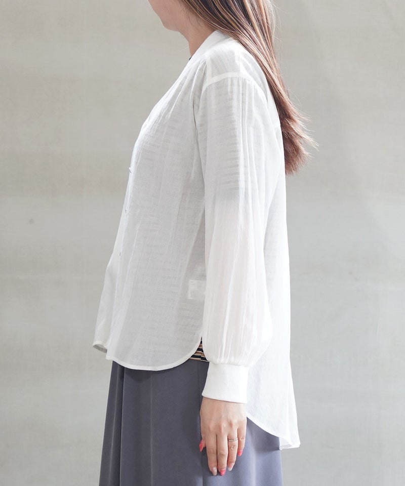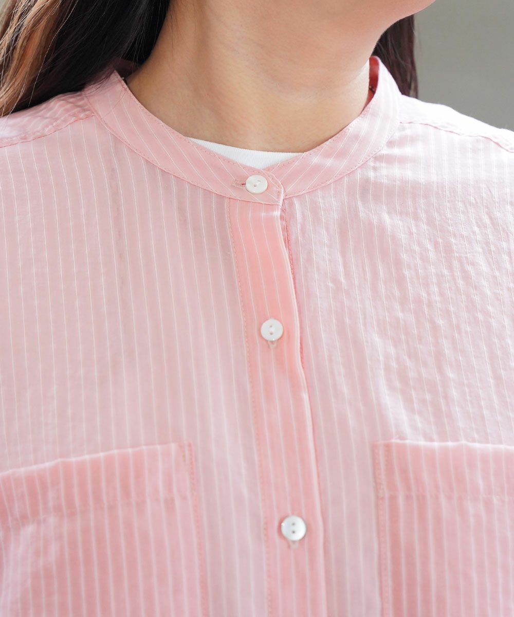 コットンボイルバンドカラーブザムシャツ