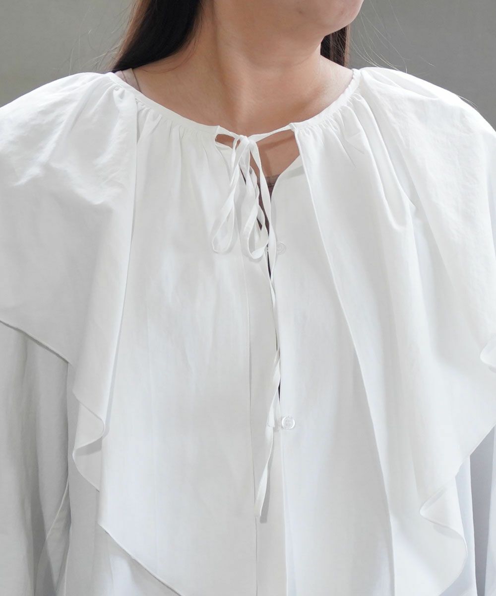 2WAYスタンドタックフリルブラウス長袖