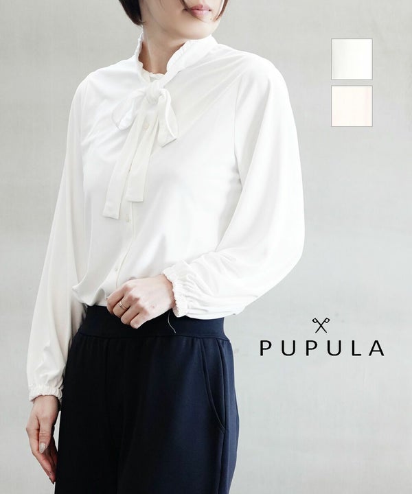 PUPULA(ププラ)から、襟元フリルのデザインがかわいいブラウス。
