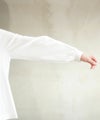 衿元、袖口に配したフリルが清楚な雰囲気をグッと格上げに。