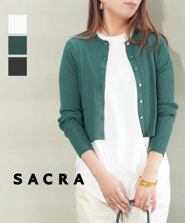 SACRA(サクラ)のリブニットカーディガン。