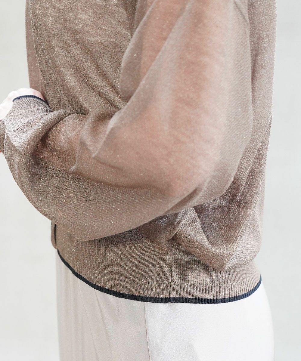 シアーレース×リブ 長袖 Vネック カーディガン