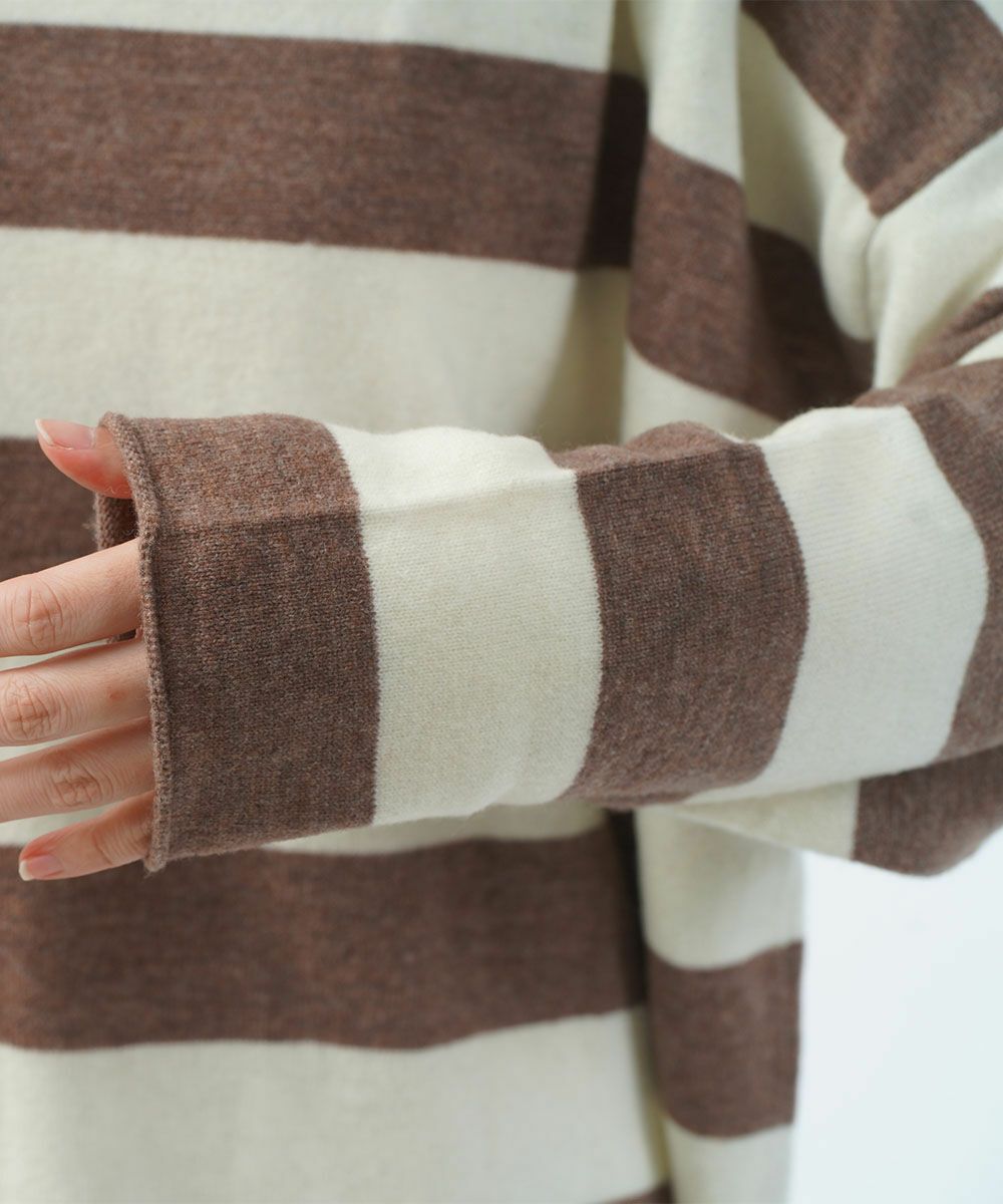 シンプルなコーディネートに投入するだけで、太めのボーダーがポイントになりスタイルアップとさりげない個性をアピールしてくれます。