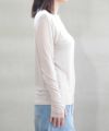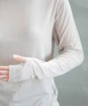 ネック部分は重ねやすいクルーネック仕立てで、
