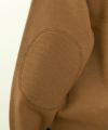 編地で表現した汗止めや、カンガルーポケット、共糸で編みたてたエルボーパッチなど、