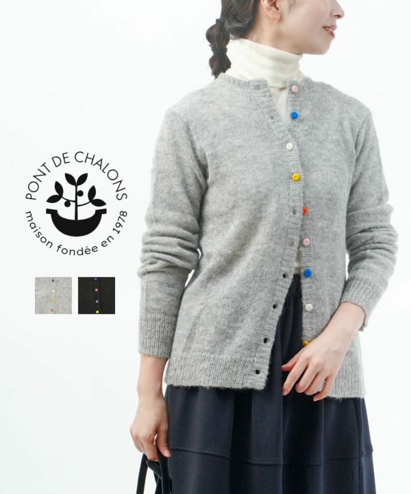 ポンデシャロンの「ベビーアルパカカラフル釦カーディガン」。