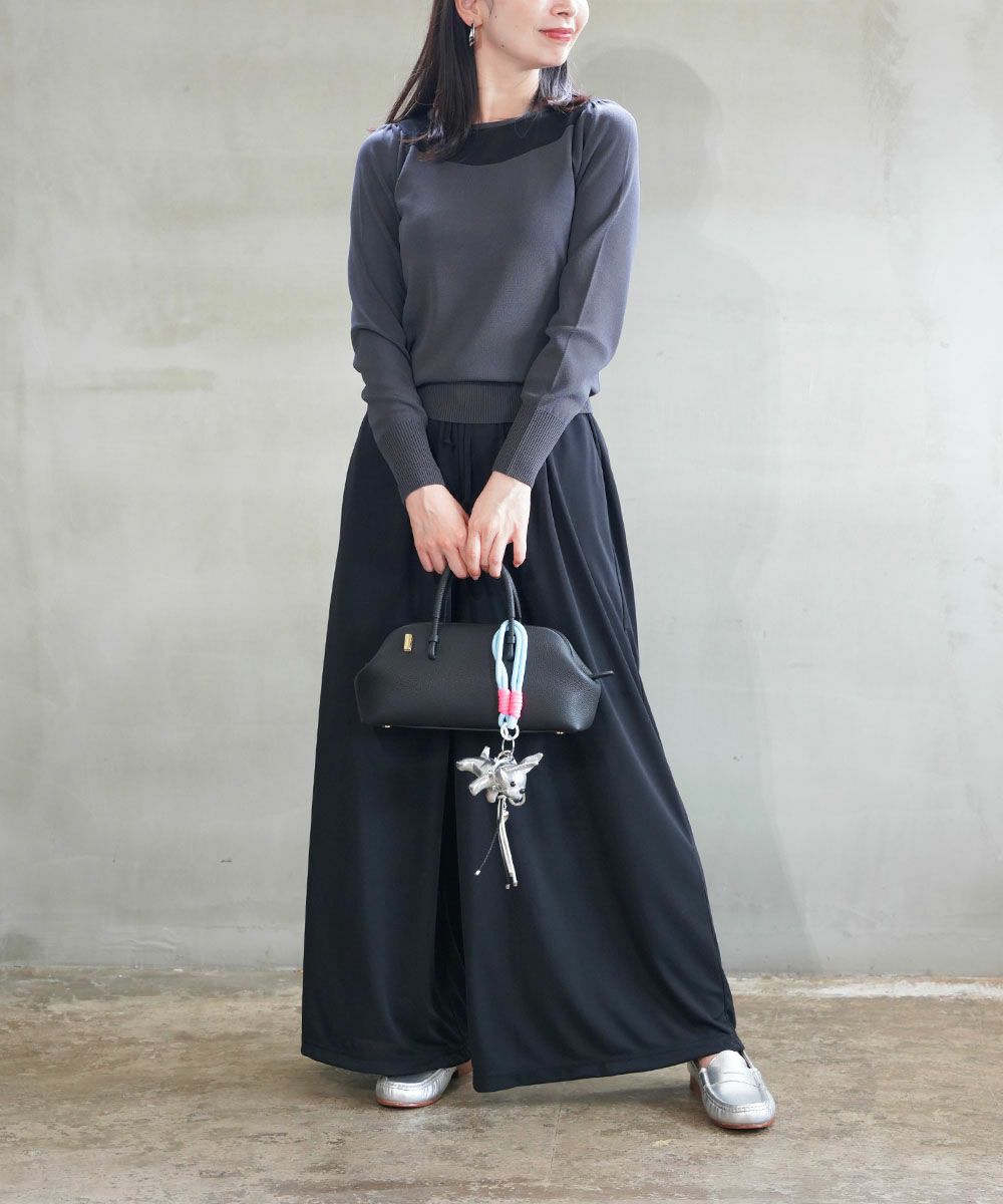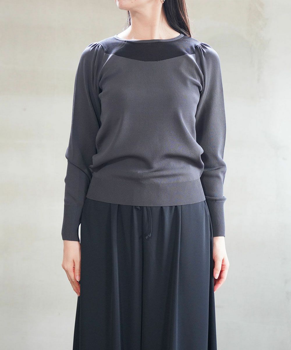 麻綿ニット×チュール切替えプルオーバー