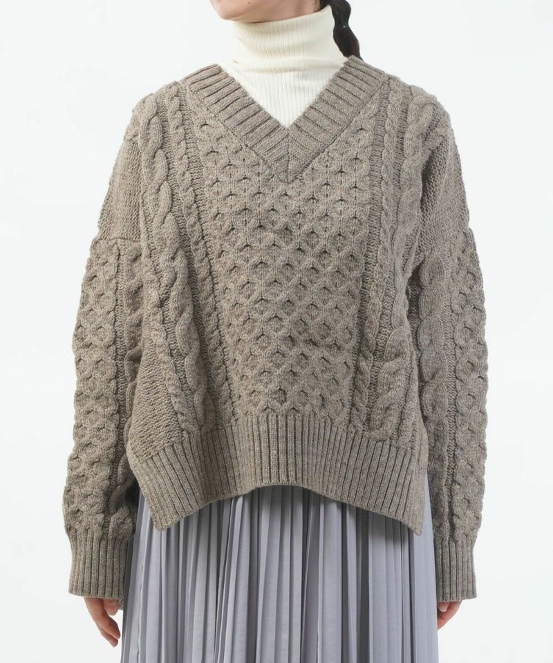 Vネックケーブルニット