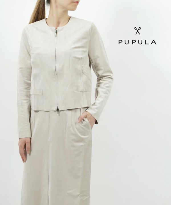 PUPULA(ププラ)トリコットスエード ショートジップ ノーカラー ジャケット