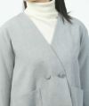 すっきりと首元を見せるノーカラーデザインで、合わせるインナーを選ばないのが嬉しいポイント◎