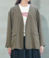 落ち感のあるツイル素材で仕立てたノーカラージャケット。