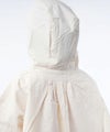 フード回りと裾に入れた太めの紐がコーディネイトのポイントに◎