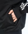 ネック周りのスタンドカラーからリブ編みの裾まで、一目でわかるシルエットが特徴的。