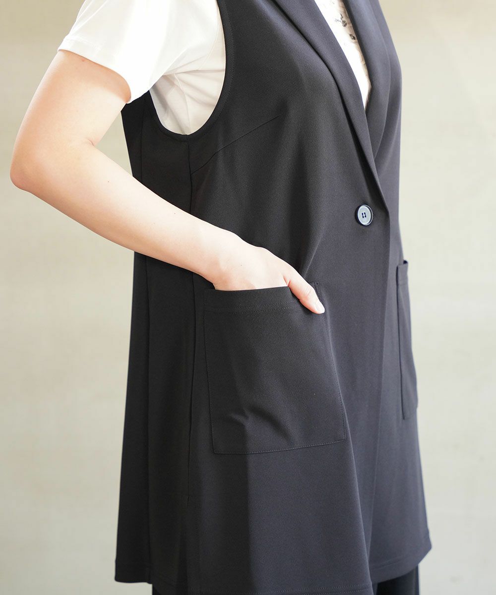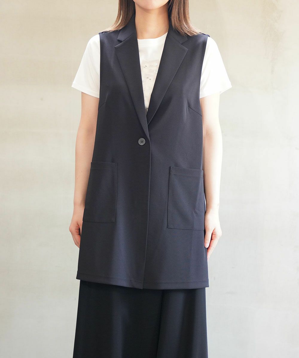 アクアダブルニット ノーカラー ロングジャケット