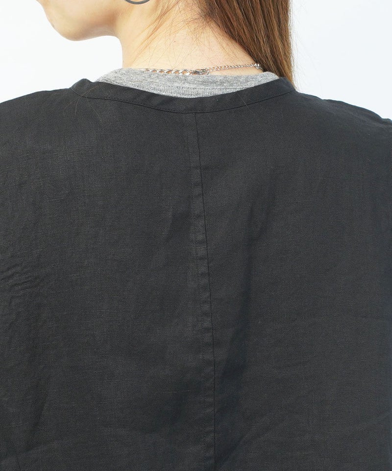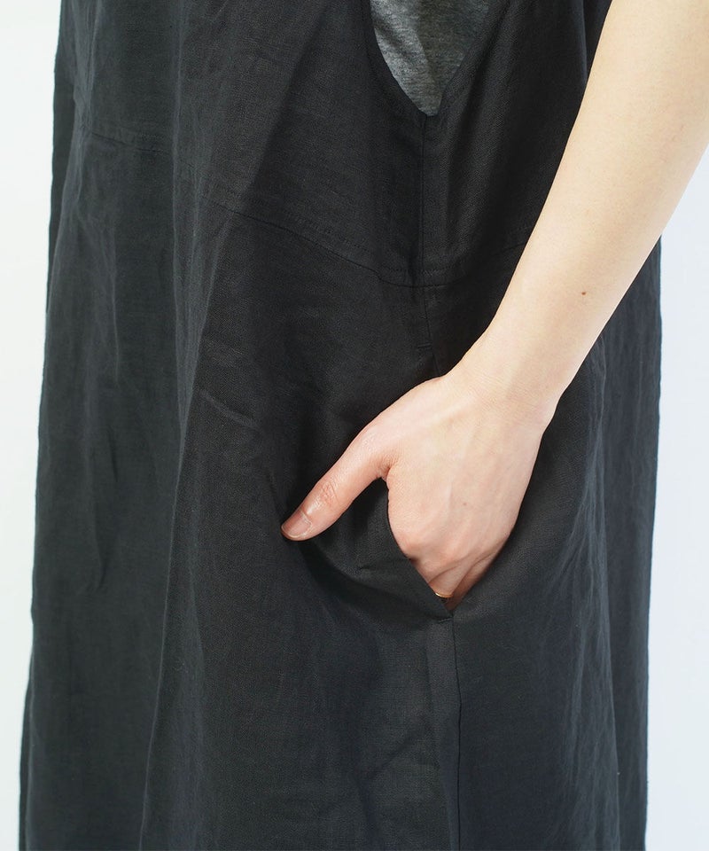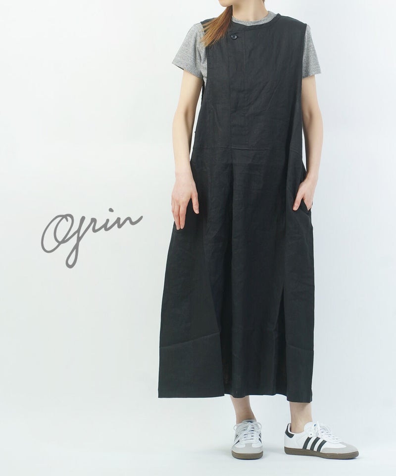 40リネン タックワンピース