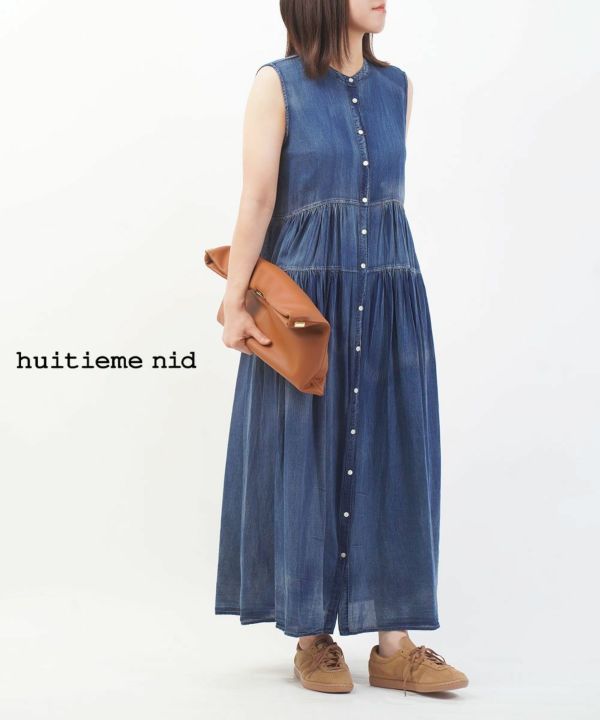 huitieme nid(ユイティーム)デニム風ノースリーブギャザーワンピース