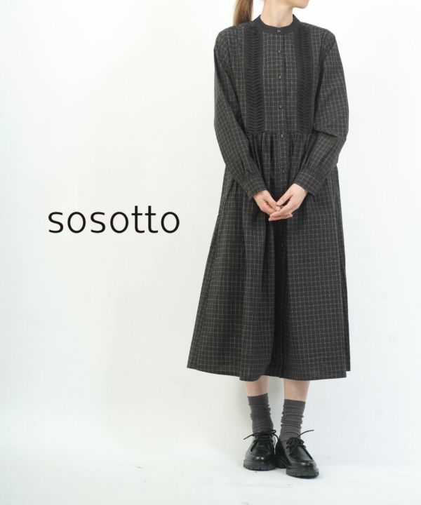 sosotto(ソソット)の「ダークチェックウェーブピンタックワンピース」。