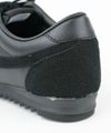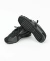 控えめなツヤ感の合成皮革とスエード調の素材を組み合わせて、シックな雰囲気のアッパーに。