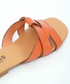 細かなシボ感のある上質なレザーをアッパーに使用したフラットサンダル。