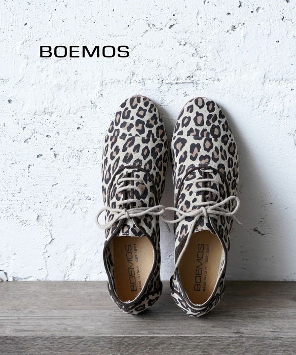 6. BOEMOS(ボエモス)スウェード レオパード柄 レースアップシューズ フラットシューズ 靴