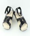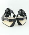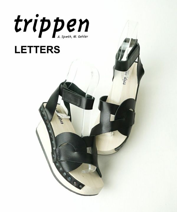 "A"と"O"の形が絡み合った、印象的な厚底の木製サンダル。