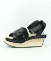 レザーと木底を留める鋲がデザインにアクセントを効かせています。