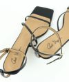 足の甲を覆ったコード風の華奢なストラップがヌーディーな足元を演出。