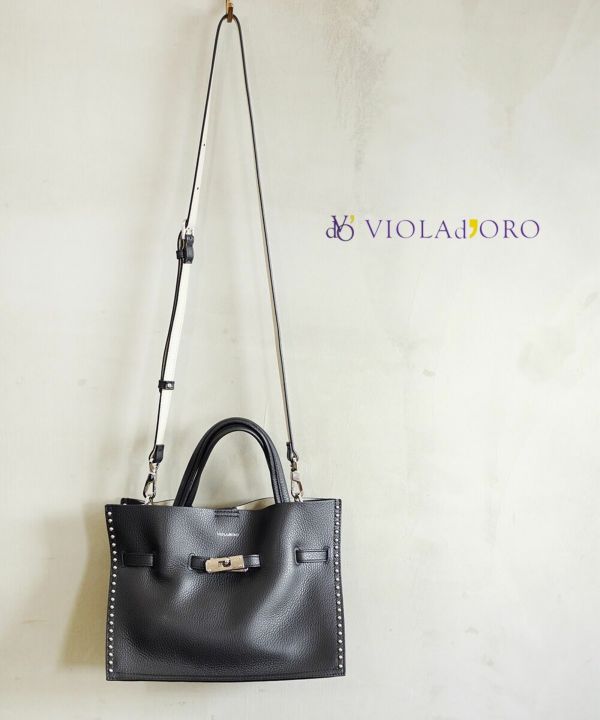 重厚感のあるスタッズを効かせたベルト付きトートバッグMサイズ。