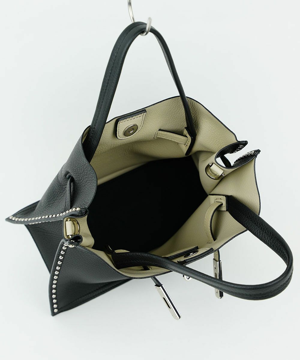 重厚感のあるスタッズを効かせたベルト付きトートバッグMサイズ。