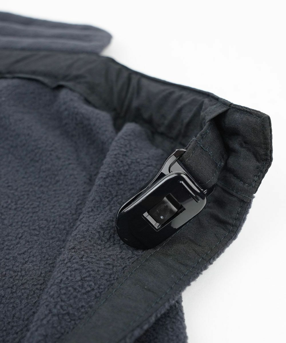 軽量でやわらかいフリース素材を本体に採用、ポケットと連結部分はナイロン布帛を使用。