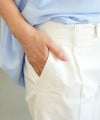 足首が見えるすっきり9分丈。パンプスにもスニーカーにも合わせやすいデザイン。