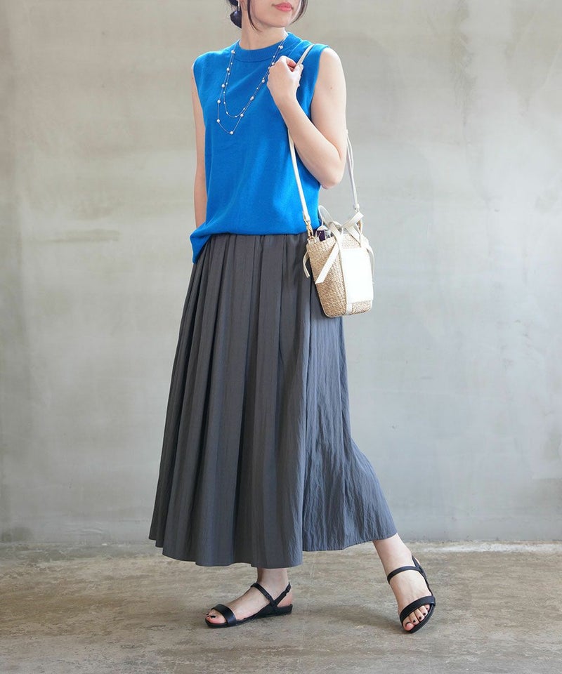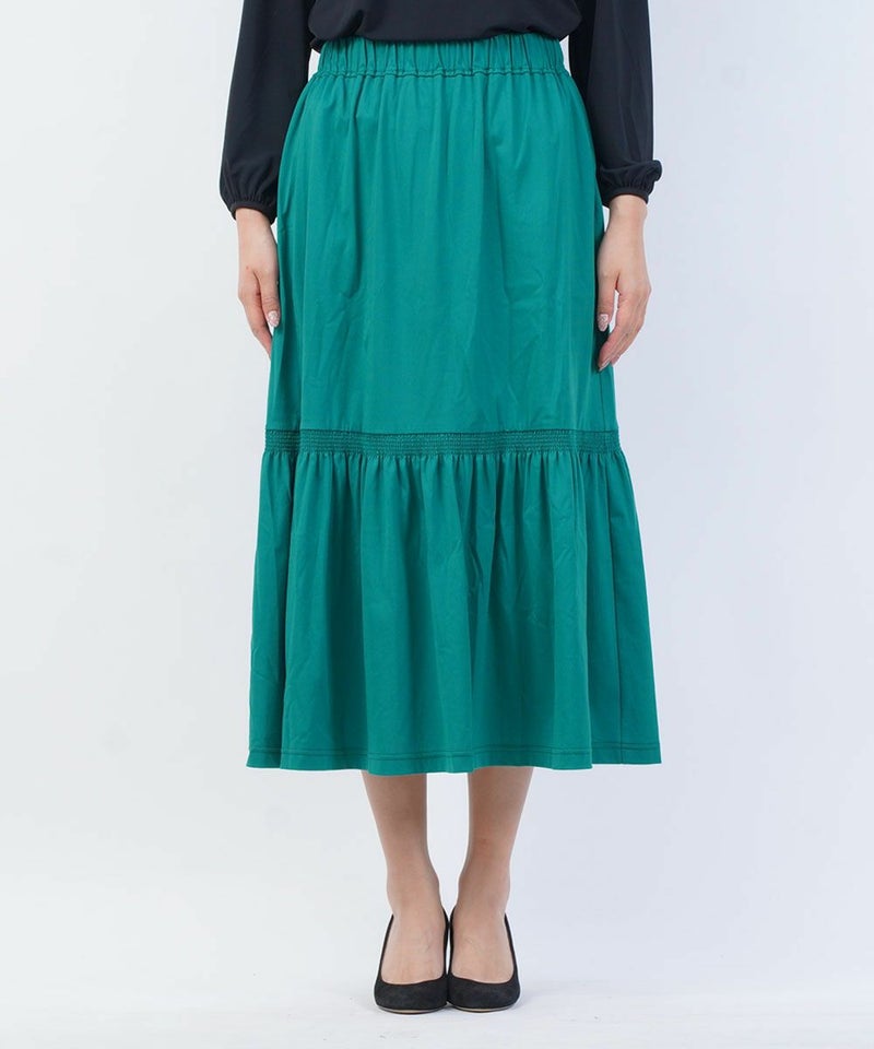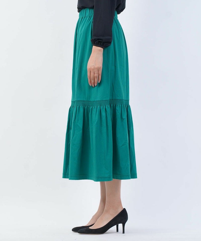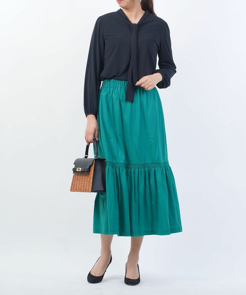 トリコットライト シャーリング切り替え ロングスカート