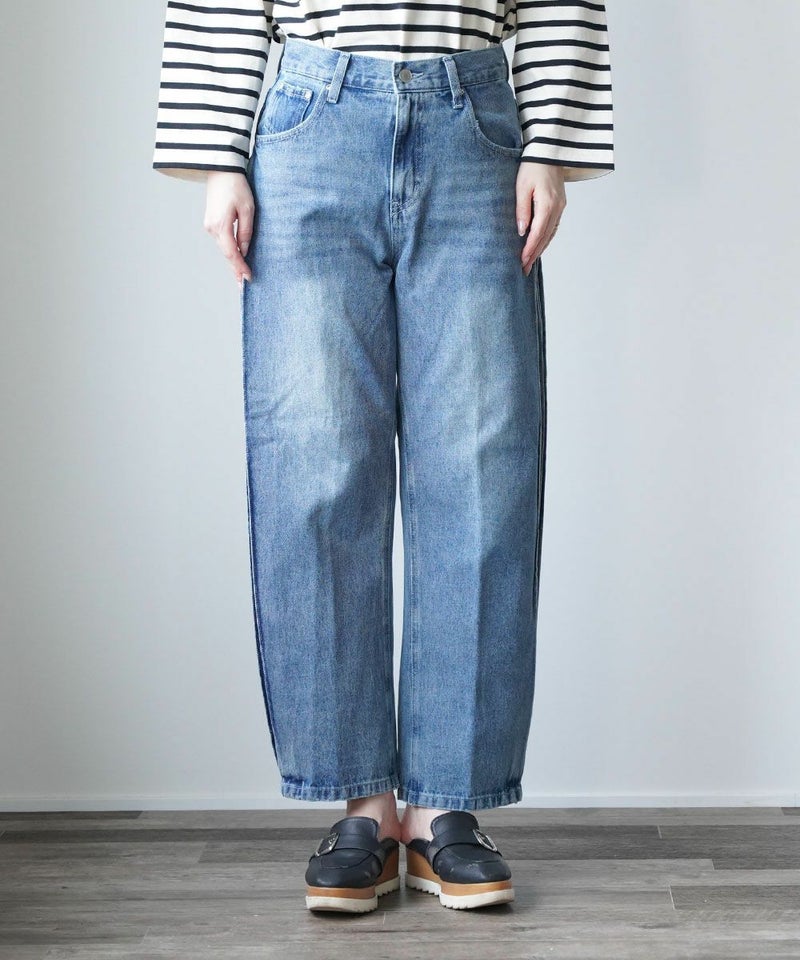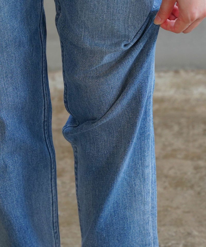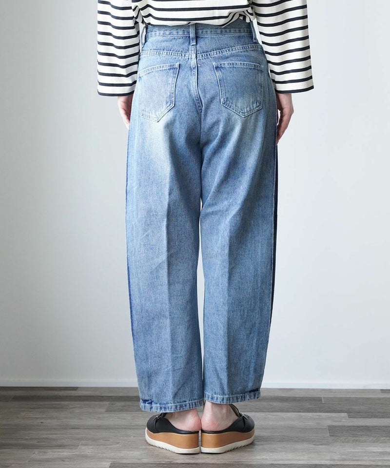 SIDE PLEATED DENIM PANTS