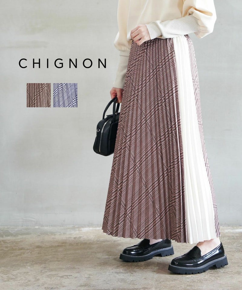 チェックパネルプリーツスカート