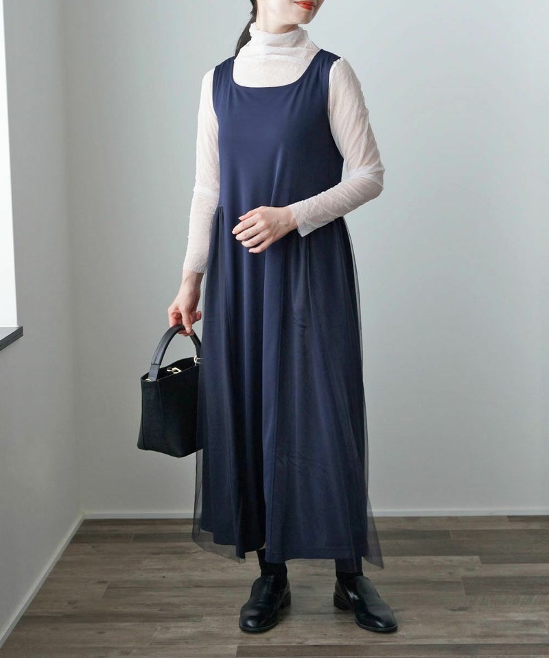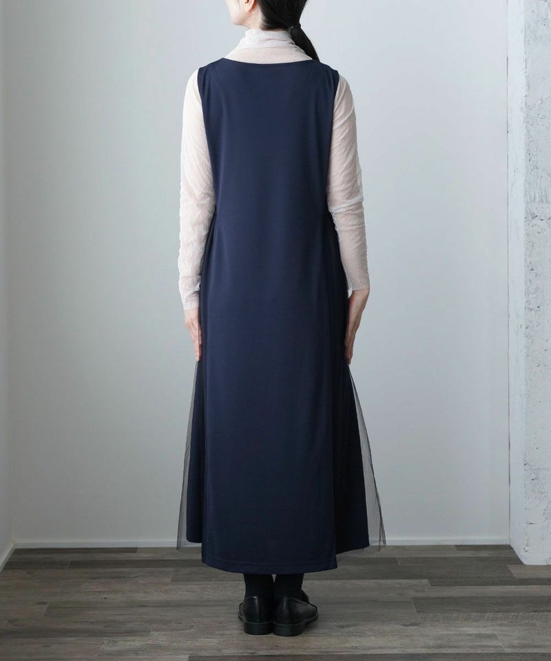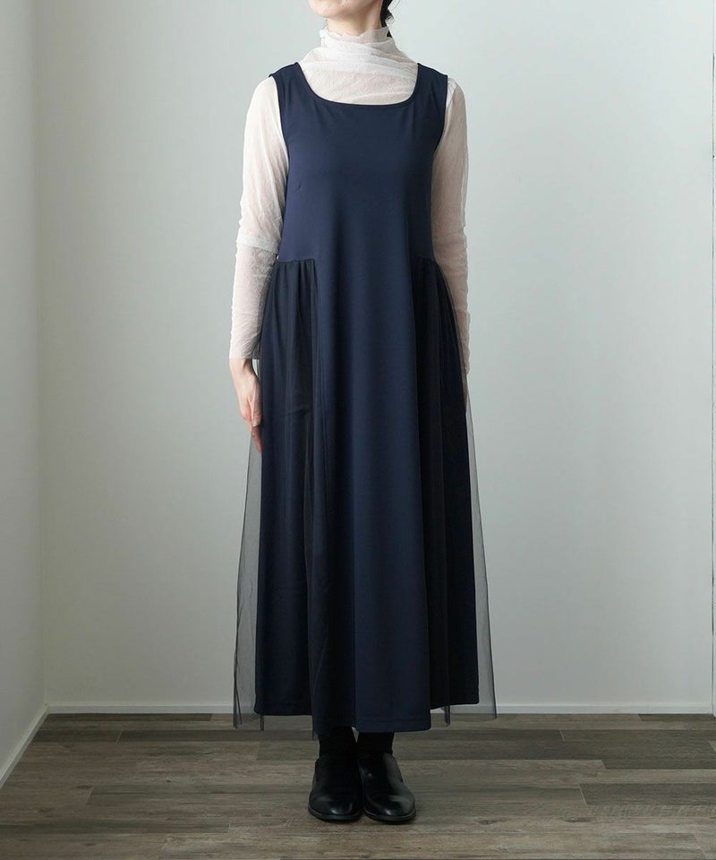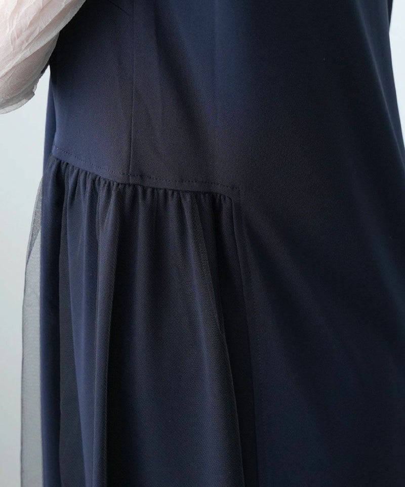 ハイツイストスムース×チュール サイド切り替えワンピース