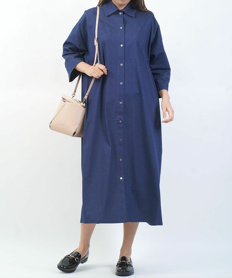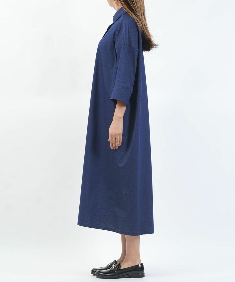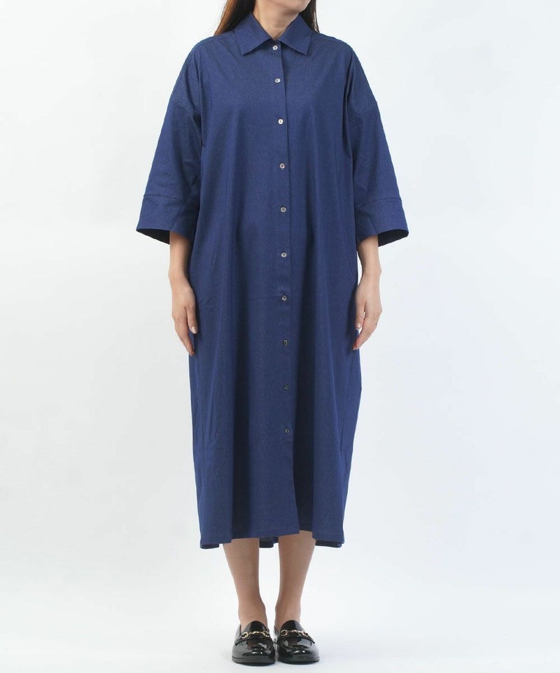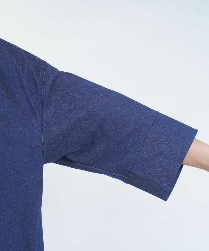 コットンミックストリコット 5分袖 フロントボタン ワンピース
