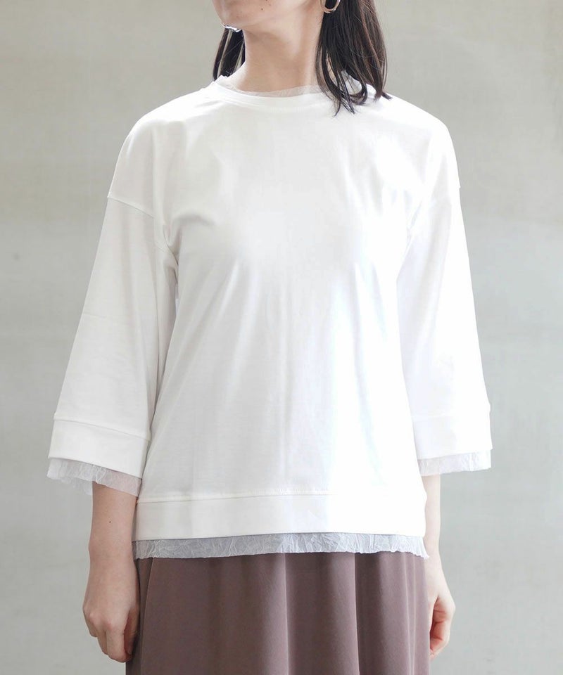 アナヤスムースジャージィ×チュール 5分袖 クルーネック プルオーバー