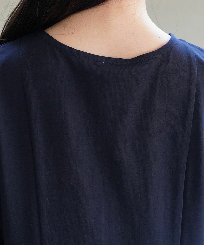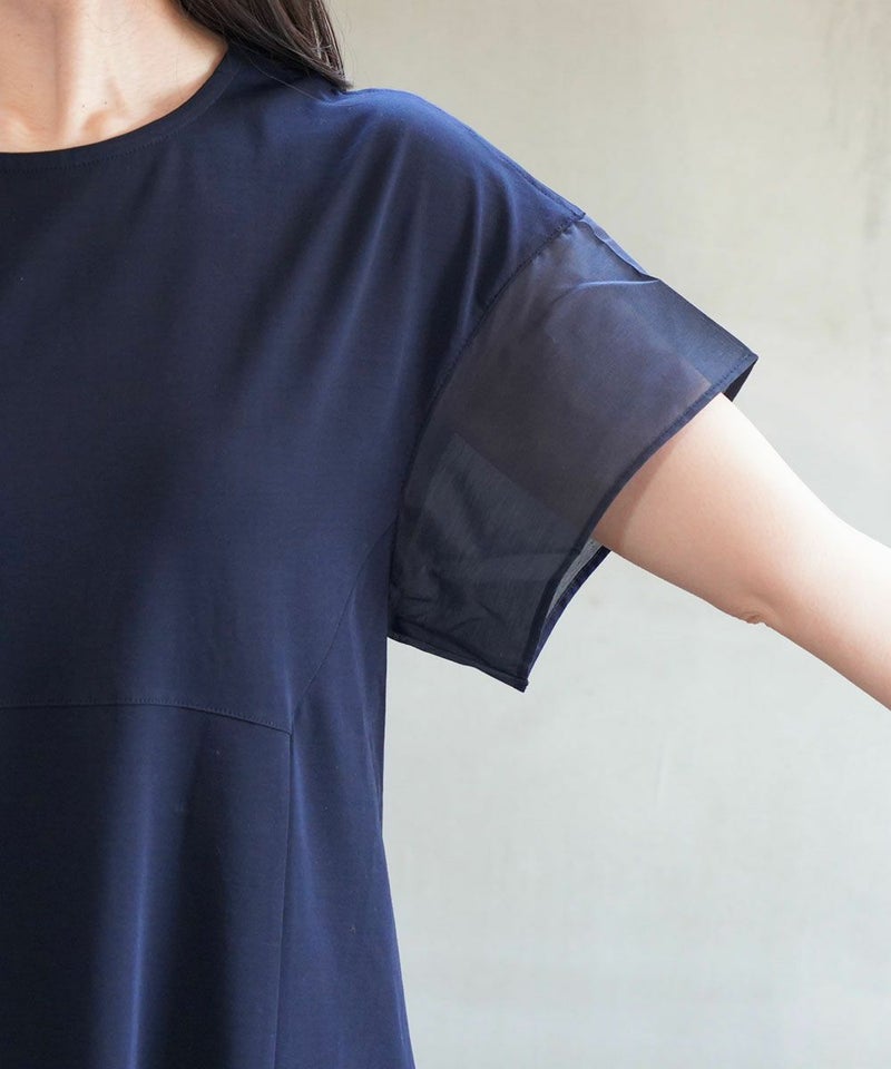 プレミアムリネン×ローン 半袖 切り替え ペプラムプルオーバー