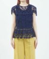 花柄のレース生地を使用した、フェミニンな半袖ブラウス。