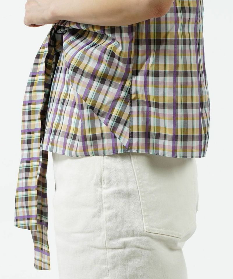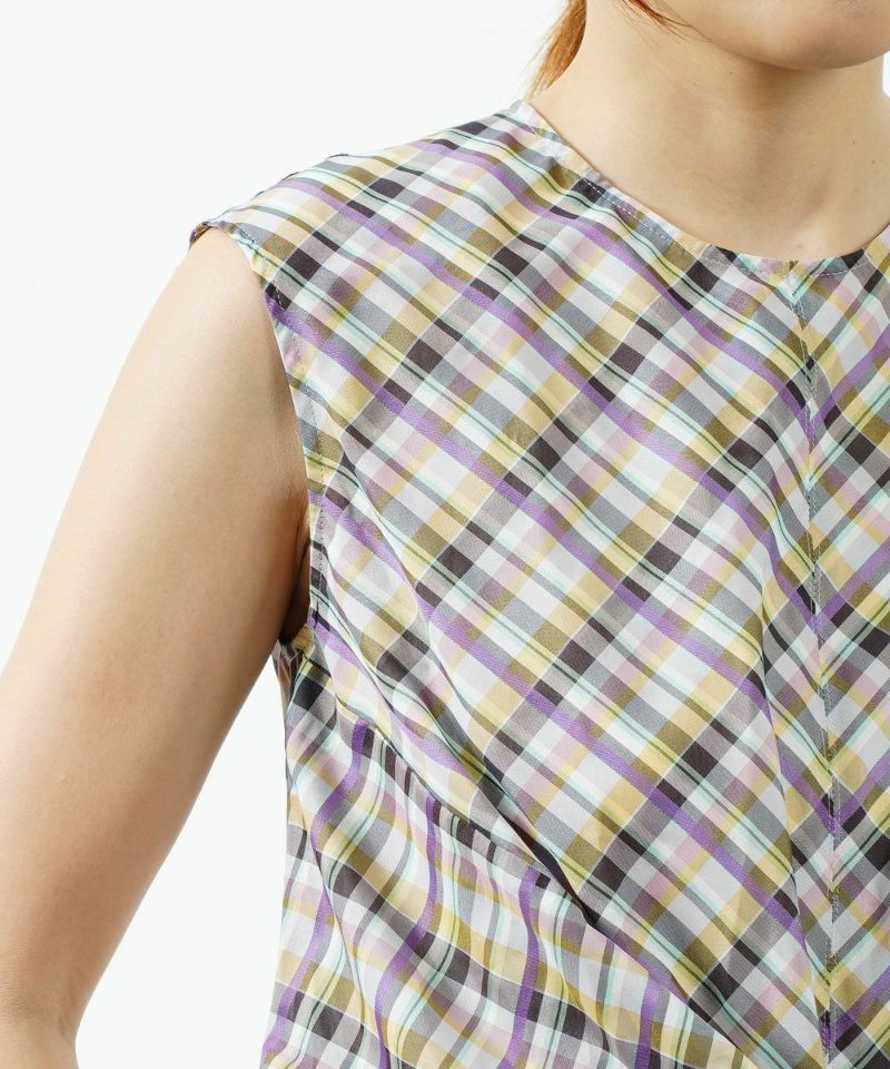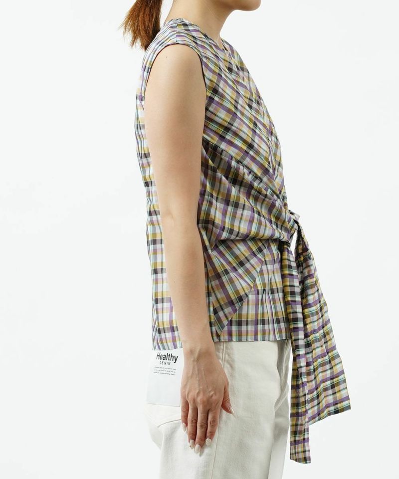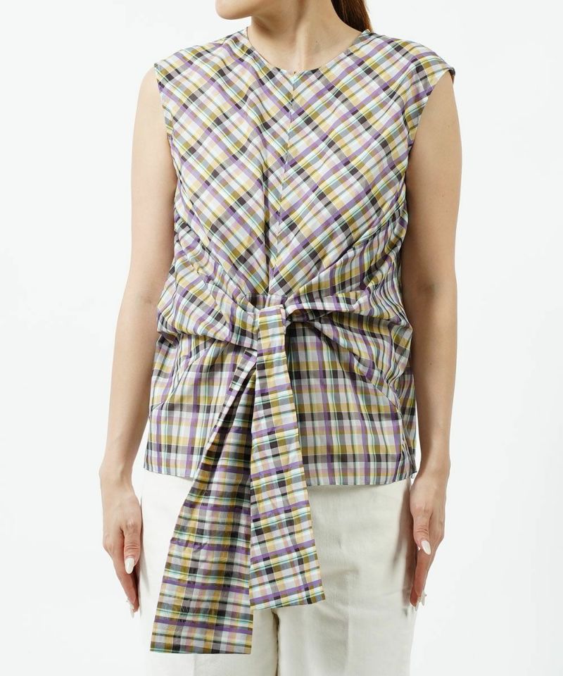 裾リボン チェック ブラウス ノースリーブブラウス