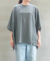 スクエアポンチョ型のオーバーサイズトップスは前裾にスリットを入れ、