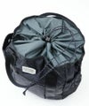 巾着仕様の大きい開口部は中が見やすく、ドローコードとストッパーによりワンアクションで開閉が可能。