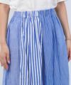 数種類の生地をパネルのように組み合わせたスカートは、