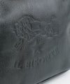 イルビゾンテのロゴを大きく刻印した、スクエアフォルムのショルダーバッグ。