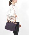 ハンドルやストラップ部分を配色のレザー素材で仕上げ、