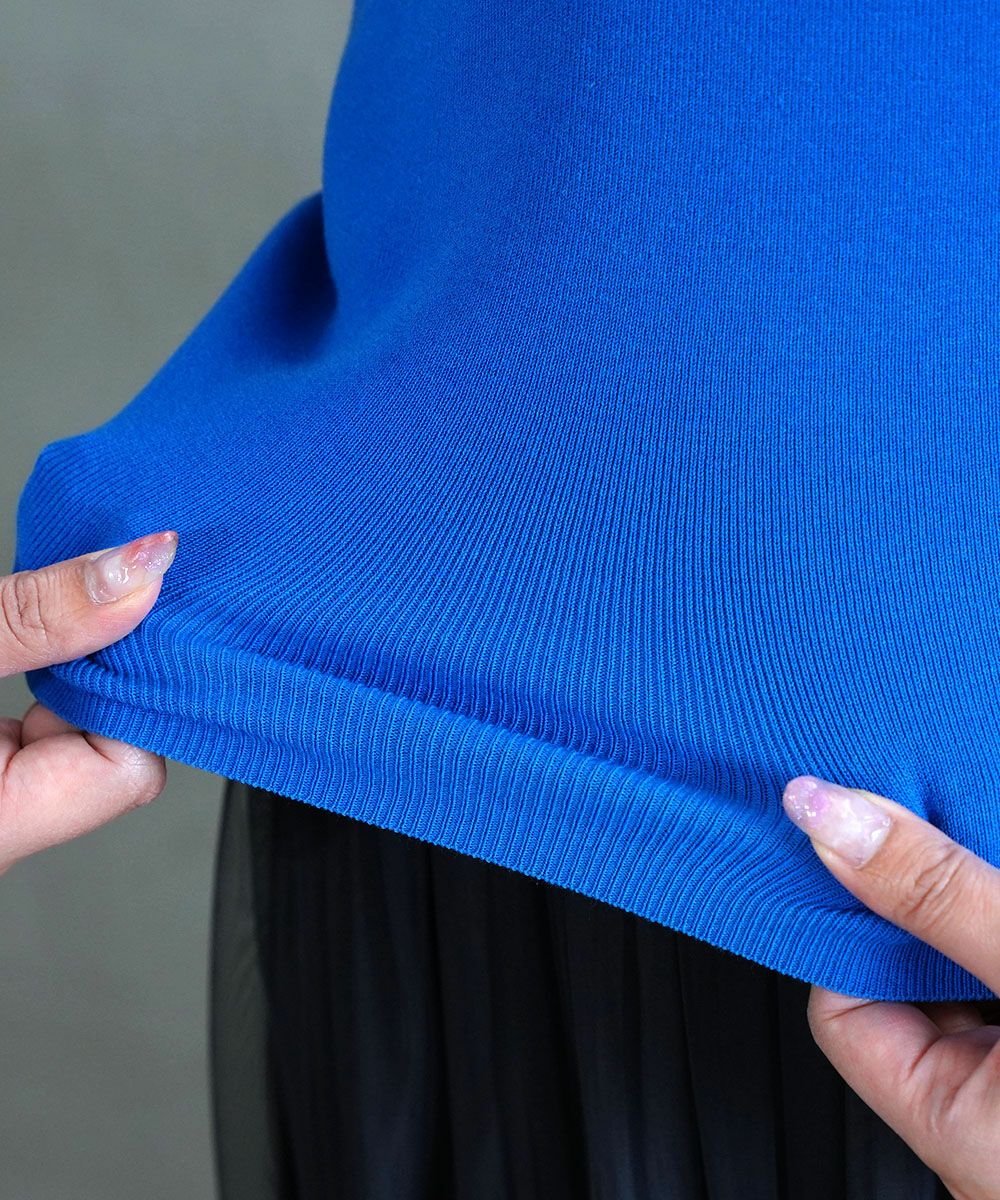 胸元と背面がスクエアカットのニットタンクトップです。