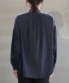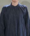 バンドカラーで襟元はすっきりした印象ながら、