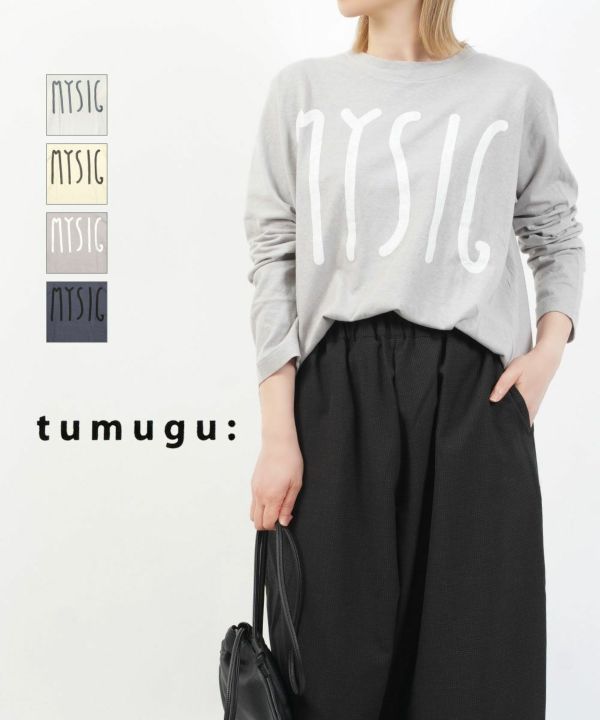 人気のラフィ天竺素材に手書きしたフレンチなロゴが可愛いデザインTシャツ。