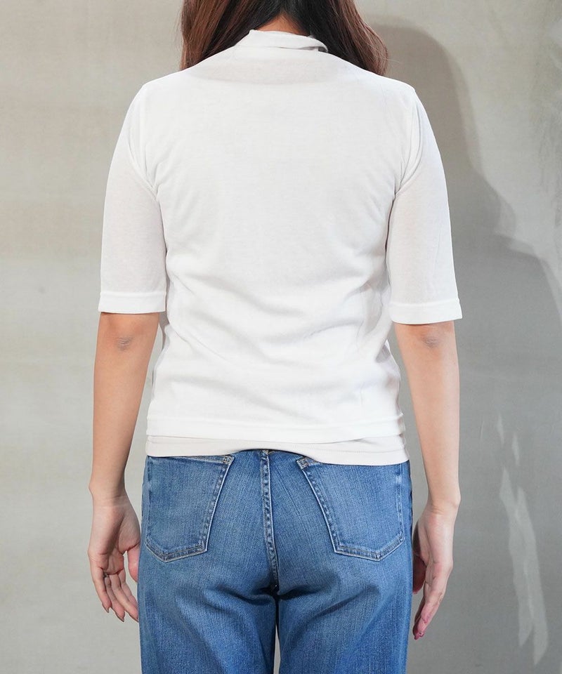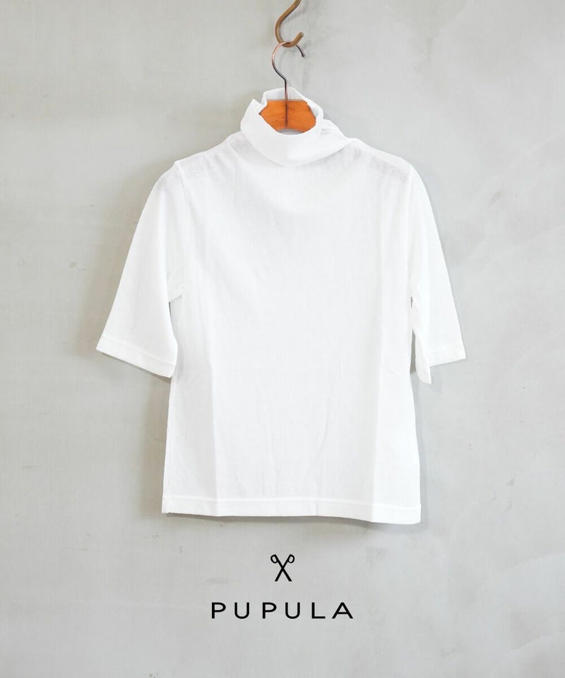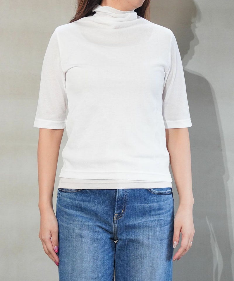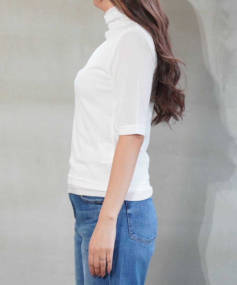 コットンナイロンツイストガーゼ 5分袖 タートルネック プルオーバー