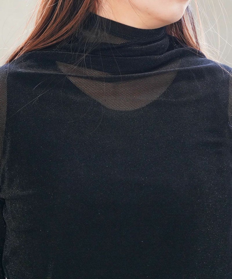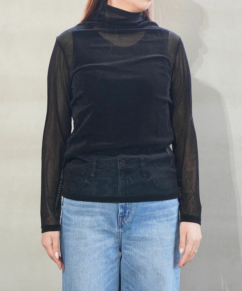 ベロアメッシュ ボトルネック カットソー